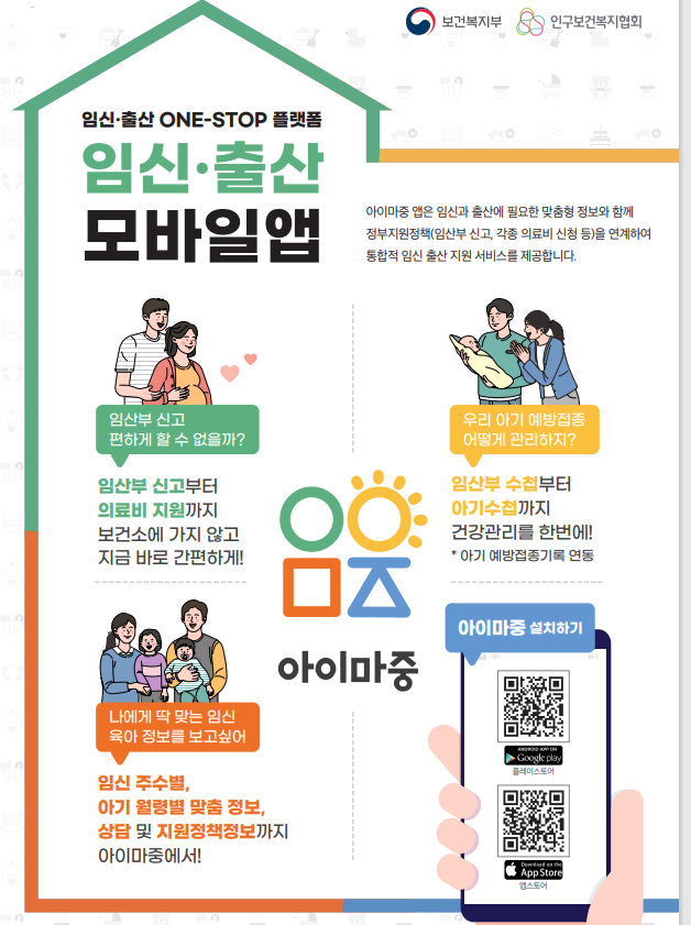 받고 우리아기 예방접종 기록도 관리해세요. 아이마중 모바일앱은 보건소와 연결되어있어 임신 관련 지원도 사업도