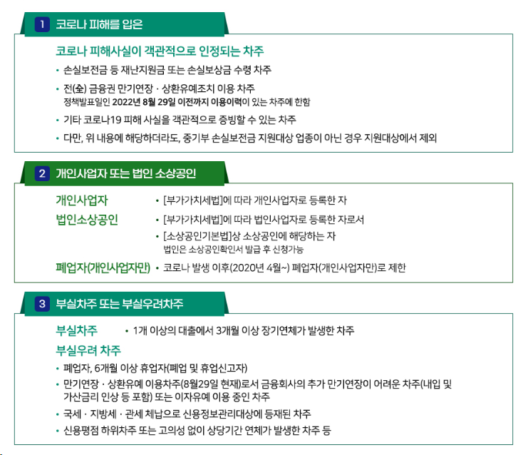 코로나 피해와 무관한 대출, 매입요건상 하자 등으로 채무조정이 어려운 대출 등은 채무조정 불가