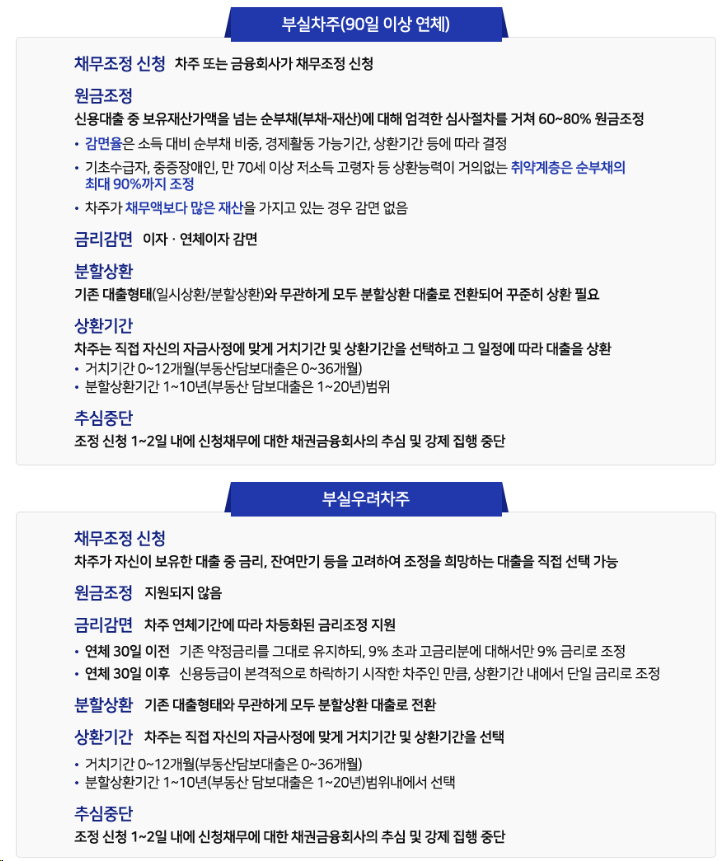 다만, 부실우려차주가 새출발기금 이용과정에서 90일 이상 채무조정안을 이행하지 못하는
