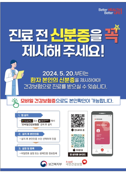 2024.5.20.부터는 병·의원, 보건소 가실 때 신분증을 꼭 챙겨가세요