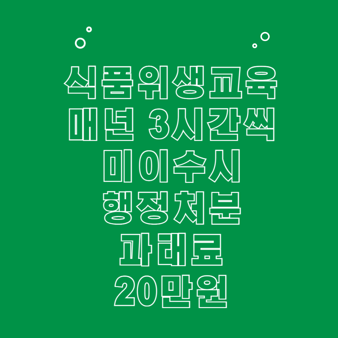 참고로 음식점 위생교육 미이수시에는 행정기관 과태료 20만원 처분이 있습니다